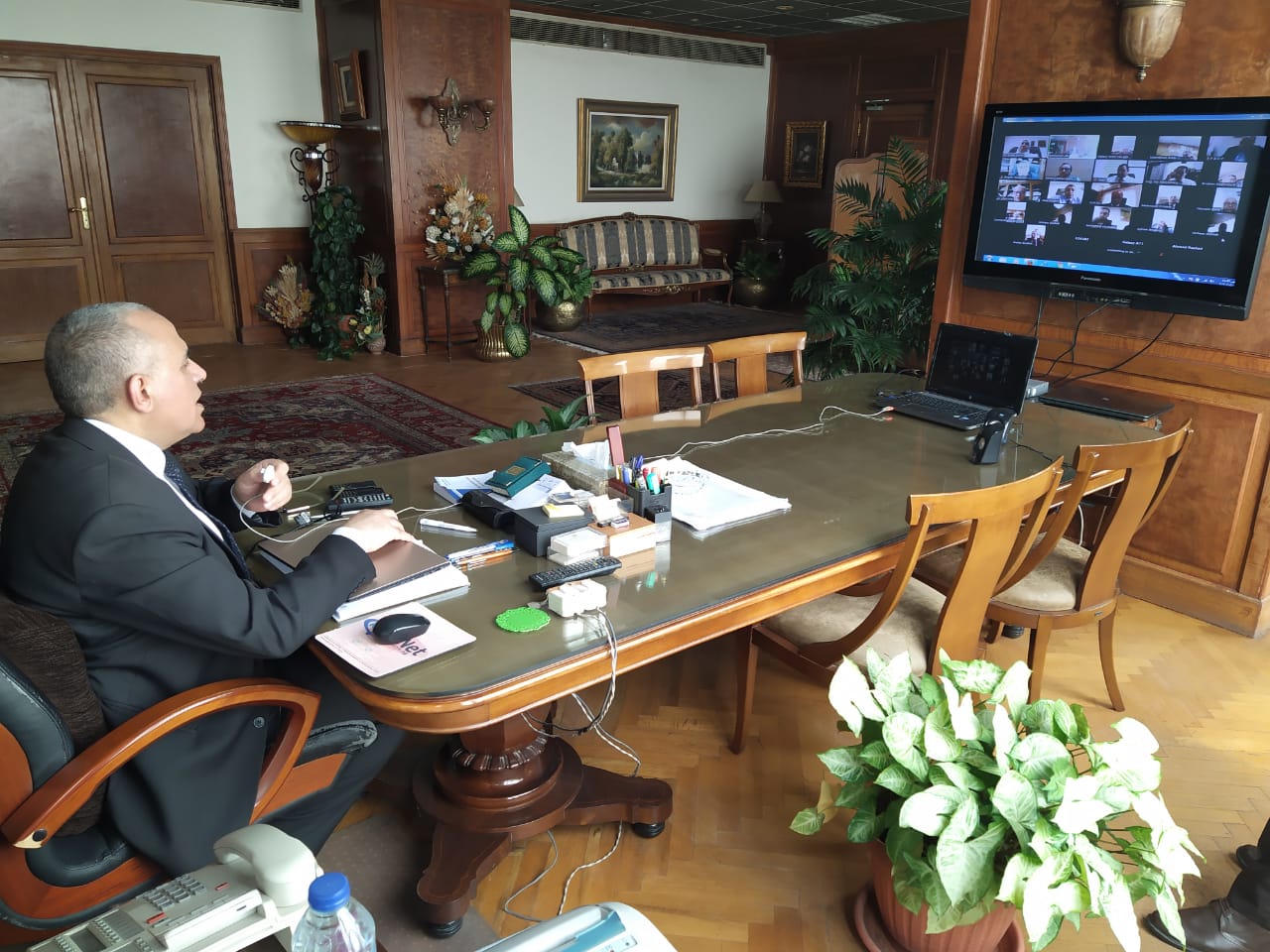عقد الدكتور محمد عبد العاطى وزير الموارد المائية والري عبر تقنية الفيديو كونفرانس اجتماعا مع السادة قيادات الوزارة والمركز القومى لبحوث المياه لمناقشة التوسع فى تطبيق التكنولوجيات المتقدمة فى أعمال النمذجة الرياضية و الاستشعار عن بُعد فى مجال إدارة الموارد المائية