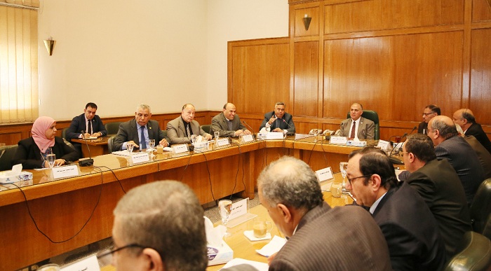 عقد الدكتور محمد عبد العاطى وزير الموارد المائية والري إجتماعاً مع رؤساء الهمصالح والهيئات والقطاعات والقيادات التنفيذية للوزارة لإستعراض خطة مواجهه النوّه القادمة من الأمطار والسيول التى تضرب البلاد خلال الفترة (١٢-١٤) مارس الجارى