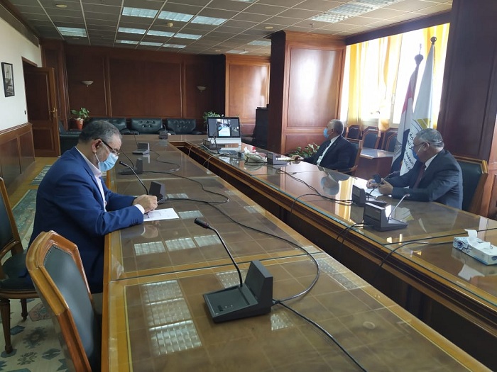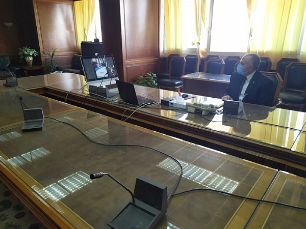 وزير الموارد المائية و الرى إجتماعاً عبر تقنية الفيديو كونفرانس مع الاستاذ السيد