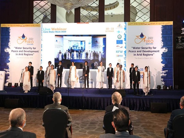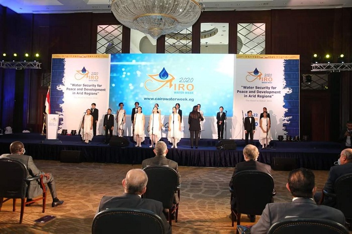 أقيم مساء اليوم حفل ختام أسبوع القاهرة للمياه 2020 في نسخته الثالثة ، وذلك بحضور السادة الوزراء والعلماء والخبراء والمشاركين من مختلف دول العالم ، حيث شهد حفل الختام تقديم عرض لكورال الاطفال التابع لمركز تنمية المواهب بدار الأوبرا المصرية ، فضلاً عن قيام الدكتورة إيمان سيد رئيس قطاع التخطيط بوزارة الموارد المائية والري باستعراض مجمل الفعاليات والأنشطة والإنجازات التي تحققت على مدار الأسبوع والتي تسهم في خدمة الشأن المائي بالداخل والخارج ، كذلك تم عرض فيلم وثائقي قصير حول المسابقة القومية للحفاظ على المياه