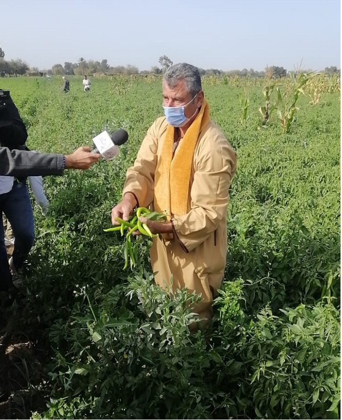وزير الري يزور أحد المزارعين الذي نجح في إدخال نظم الري الحديث بزمام ١٥٠٠ فدان من الأراضي المجاورة نتيجة نجاح تجربته