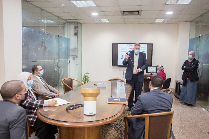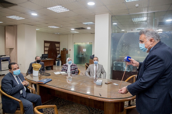 كما استعرض سيادته جهاز قياس درجة رطوبة التربة والذى تم تصنيعه بمعرفة مهندسى وزارة الموارد المائية والرى والذى يقوم بتحديد مدى إحتياج المزروعات للمياه من خلال مؤشر يبين درجة رطوبة التربة ومدى احتياجها للرى من عدمه مشبعة ، ويساهم هذا الجهاز فى تنظيم عملية الرى وترشيد إستهلاك المياه ، بالإضافة لزيادة إنتاجية المحاصيل ورفع مستوى جودتها