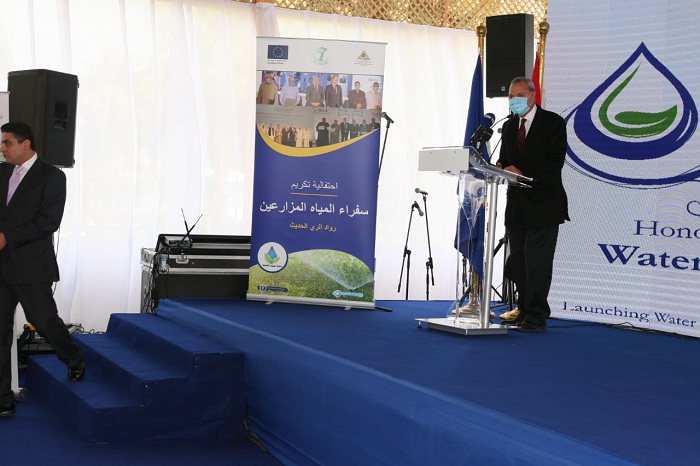 وأوضح الدكتور عبد العاطي أن وزارة الموارد المائية والري أطلقت مبادرة “سفراء المياه ” ، وذلك بالتعاون مع مشروع “دعم الإصلاح وتعزيز القدرات الفنية لقطاع المياه” (ستارز) والممول من الإتحاد الأوروبي ، والتى تهدف لتعزيز إنتماء طلبة المدارس في مصر والإستفادة من جهودهم في توعية مجتمعاتهم المحلية من خلال قيامهم بتطبيق ممارسات ترشيد إستخدام المياه والحفاظ عليها، وتوعية عائلاتهم وأصدقاءهم بهذه الممارسات وأهمية تطبيقها ، كما أوضح سيادته أنه تم أيضاً إطلاق مبادرة “سفراء المياه المزارعين” بهدف الاستفادة من جهود المزارعين الفائزين في توعية المزارعين المحيطين بهم من خلال قيامهم بعمل جلسات لنقل خبراتهم وتجاربهم الناجحة في تطبيق نظم الري الحديث لغيرهم من المزارعين ، وعمل زيارات ميدانية لأراضي المزارعين لمساعدتهم وإرشادهم ، مؤكداً أن نقل المعرفة من مزارع الى مزارع آخر تُعد من أسهل وأسرع الطرق لتحقيق التوعية المطلوبة