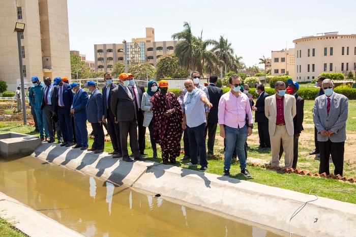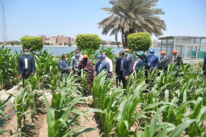 تفقد تجارب بحثية لقياس استهلاك النبات للمياه ، وتأهيل الترع ، ومعالجة مياه الصرف الصحى ، وتحلية المياه المالحة باستخدام الأغشية ، و وسائل الحمايه من الفيضان ، والاداره المثلي للمياه