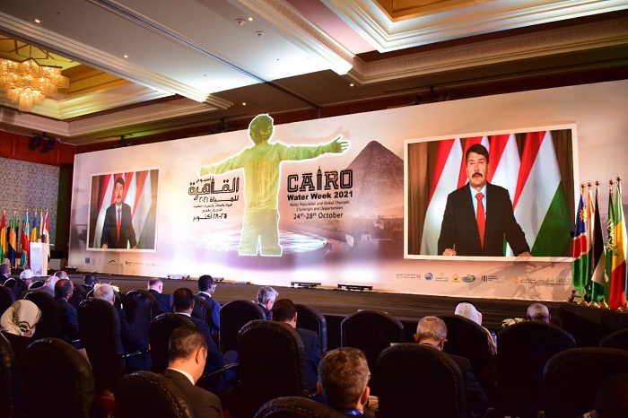 إنطلقت منذ قليل فعاليات إسبوع القاهرة الرابع للمياه تحت شعار “المياه والسكان والتغيرات العالمية : التحديات والفرص” ، الذي يقام تحت رعاية فخامة السيد الرئيس/ عبد الفتاح السيسي رئيس الجمهورية ، وحضور عدد كبير من الوزراء والوفود الرسمية وكبار المسئولين في قطاع المياه والعلماء والمنظمات والمعاهد الدولية ومنظمات المجتمع المدني والسيدات والمزارعين والقانونيين من مختلف دول العالم ، بحضور (١٠٠٠) مشارك فعلي ، و (٨٠٠) مشارك افتراضي عن بعد ، وحضور عدد (٢٠) وفد وزاري ومشاركة (٤٤) وفد وزاري بشكل افتراضي