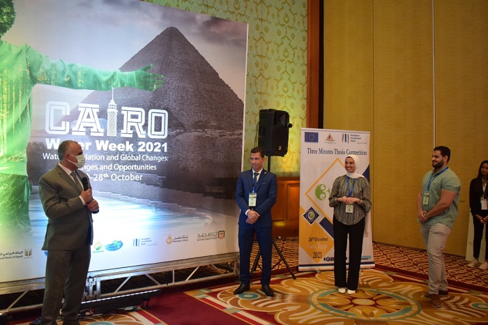 تم الإعلان اليوم عن الفائزين بمسابقة عرض رسائل الماجستير والدكتوراه خلال ثلاث دقائق .. حيث نظم أسبوع القاهرة للمياه هذه المسابقة تحت رعاية بنك الاستثمار الأوروبي و البنك الاهلى المصرى على هامش فعاليات الأسبوع حيث تهدف المسابقة إلى قيام طلاب الماجستير والدكتوراه بتقديم عروض بحثية للجمهور غير المتخصص خلال ثلاث دقائق فقط