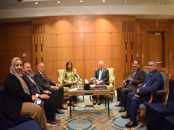عقد السيد الدكتور/ محمد عبد العاطى وزير الموارد المائية والرى لقاء مع السيدة السفيرة نبيلة مكرم عبد الشهيد وزيرة الدولة للهجرة وشئون المصريين بالخارج ، والدكتور هانى سويلم الدكتور بجامعة اخن الألمانية ، والدكتور هشام العسكرى الدكتور بجامعة شابمان الأمريكية