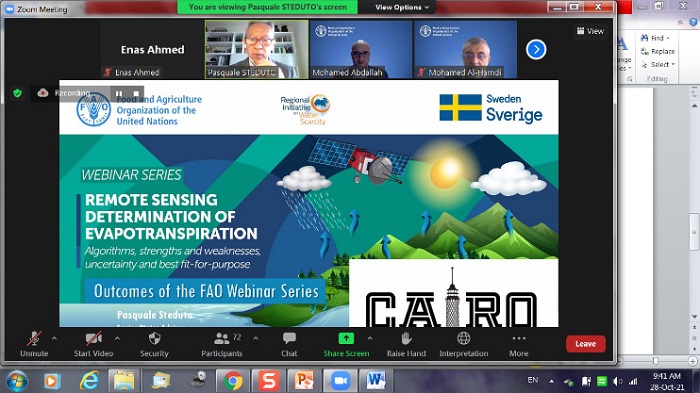 تحديد قيم البخر نتح للنباتات باستخدام تقنيات الاستشعار عن بعد ، حيث تم عرض النتائج المستخلصة من سلسلة الندوات التي أقامتها منظمة الأغذية والزراعة عبر الويب