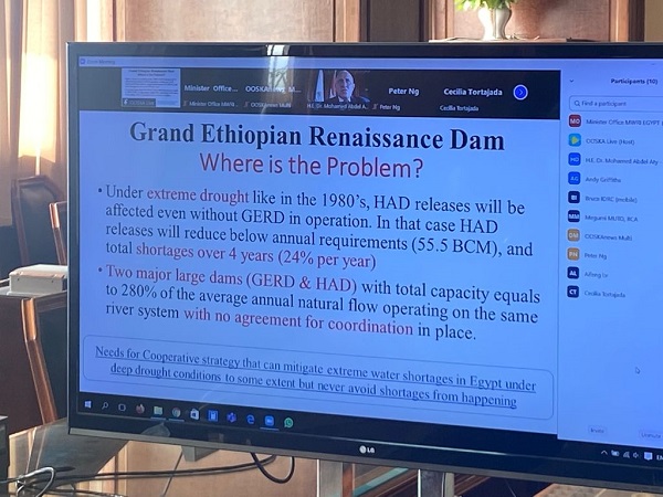 وأكد الدكتور عبد العاطى على أن عدم وجود إتفاق قانونى عادل وملزم لملء وتشغيل سد النهضة الاثيوبى ، وادارته بشكل منفرد من جانب إثيوبيا ، مع قيام الجانب الاثيوبى بإصدار العديد من البيانات والمعلومات المغلوطة ، تسبب فى حدوث أضرار كبيرة على دولتى المصب ، والتأثير على النظام البيئى والمجتمعى ، مثل حالات الجفاف والفيضان وتلوث المياه التى عانت منها دولة السودان ، حيث تتكلف دول المصب مبالغ ضخمة تقدر بمليارات الدولارات لمحاولة تخفيف الآثار السلبية الناتجة عن هذه الاجراءات الأحادية