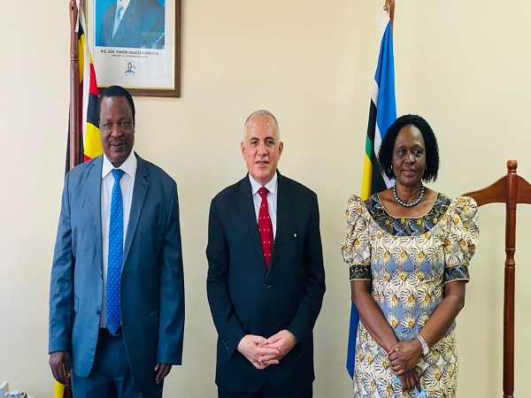 في ثانى أيام زيارته لدولة أوغندا .. إلتقى السيد الدكتور/ محمد عبد العاطى وزير الموارد المائية والرى بالسيد/ سام مانجوشو شيبتوريس وزير المياه والبيئة الأوغندي ، والسيدة/ آتيم بياتريك وزيرة الدولة للبيئة الأوغندية ، وبحضور السيد السفير/ أشرف سويلم سفير مصر فى أوغندا والسيد المستشار/ محمد نزيه مستشار السفارة المصرية بأوغندا والوفد المرافق للسيد الوزير وبعثة الري المصري بأوغندا ومسئولي وزارة المياه والبيئة الأوغندية ، وقد تناولت المباحثات سبل تعزيز التعاون بين البلدين ، وموقف المشروعات الجارية ، وخاصة مشروع سدود حصاد مياه الأمطار والذي يتم تمويله من الوكالة المصرية للشراكة من أجل التنمية بوزارة الخارجية المصرية