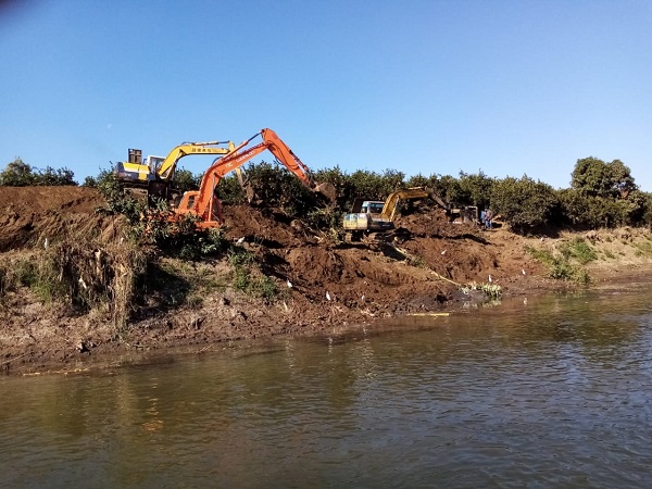 وإزالة مخالفة ردم بغرض الزراعة فى المهد بناحية جزيرة الرقبة بمركز دراو بأسوان ، وذلك بمعرفة المخالفين وعلى نفقتهم الخاصة وتحت إشراف مهندسى وفني الوزارة ، كما تم إزالة عدد (٢١) مخالفة عبارة عن أحواش وغرائز خشبية داخل المجري المائي بمساحة ٥٠٣ متر مربع بمركز مطوبس بمحافظة كفر الشيخ