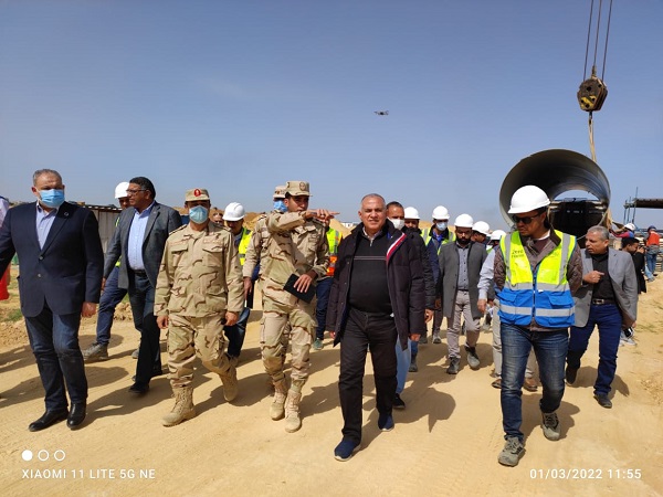 وأوضح سيادته أن التنفيذ يتم بمعدلات مرتفعة لنهو المشروع في مواعيده المحددة ، وأنه من المتوقع الإنتهاء من محطة المعالجة خلال عام ، مشيراً إلى أنه تم نهو ٢٢% من أعمال المشروع المستهدفة ، حيث تم الإنتهاء من تنفيذ محطات الرفع بنسب تتراوح بين (٢٥ – ٤٣) % من المستهدف ، كما تم نهو مسار القناة المفتوحة بنسبة تنفيذ ٢٥% ، ونهو مسار المواسير بنسبة ٤١%