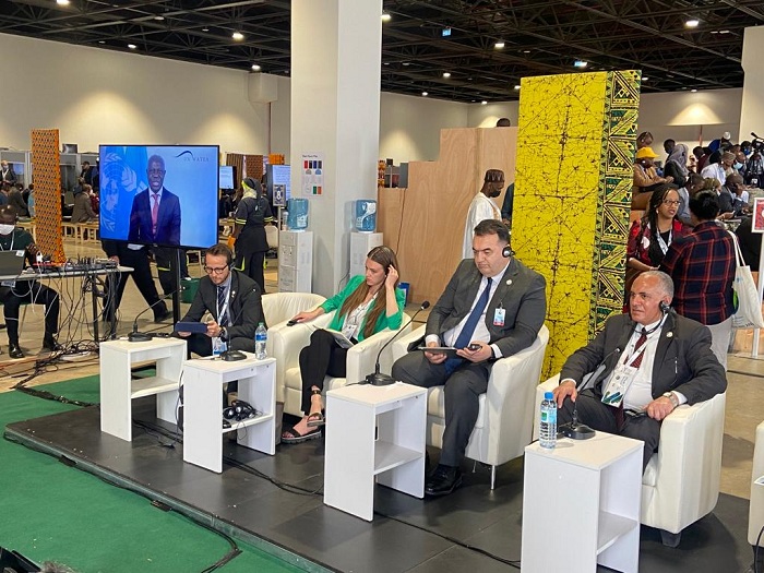 وعلى هامش مشاركة سيادته فى المنتدى .. إلتقى الدكتور عبد العاطى بعدد من السادة الوزراء وكبار مسئولى المياه بعدد من الدول والمنظمات الدولية .. حيث إلتقى سيادته بالسيدة/ إيف بازيبا ماسودي نائب رئيس مجلس الوزراء ووزيرة البيئة والتنمية المستدامة بجمهورية الكونغو الديمقراطية ، حيث تم بحث سبل تعزيز العلاقات بين البلدين في مجال المياه فى إطار بروتوكول التعاون الفني في مجال الموارد المائية الموقع بين مصر والكونغو ، والذي تم مده لخمس سنوات جديدة بين عامى ٢٠٢٢ – ٢٠٢٧ ، ويتم تحت مظلته تنفيذ مشروع “الإدارة المتكاملة للموارد المائية” والذي يشتمل علي العديد من الأنشطة ذات الطابع التنموى وذلك من خلال منحة مصرية بهدف تعظيم إستخدام الموارد المائية وبناء وتنمية الكوادر الفنيه لإدارة هذه الموارد ، كما تم التباحث حول مشروع محور التنمية بين بحيرة فيكتوريا والبحر المتوسط ، بإعتبار المياه أساس التعاون بين الدول ، الأمر الذى يفتح آفاق التكامل في كافة المجالات ، وتحقيق المنفعة المتبادلة وزيادة التبادل التجارى بين الدول