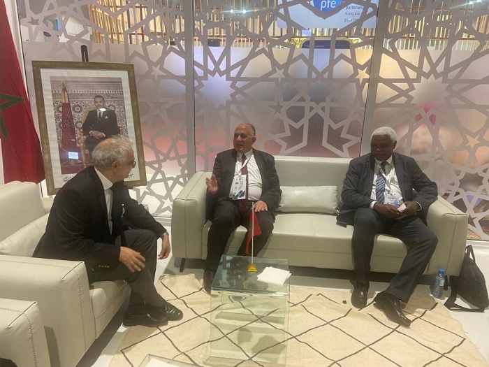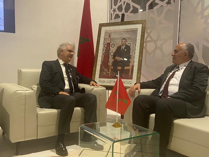 وإلتقى سيادته بالسيد/ نزار بركة وزير المياه المغربى ، حيث ناقش سيادتهما التقدم المحرز في التعاون المشترك بين البلدين في مجال إدارة الموارد المائية ، مع التأكيد على ضرورة تحقيق أقصى درجات التعاون والتنسيق بين البلدين الشقيقين لتحقيق أهداف الشعبين في التنمية المستدامة والوصول للإدارة المثلى للموارد المائية ، خاصة في ظل ما تواجهه مصر ومعظم الدول العربية من تحديات تواجه مواردها المائية