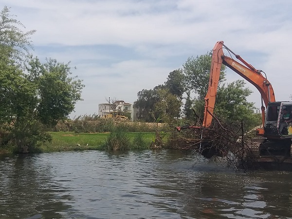كما تم إزالة عدد (٤) مخالفات بمركز فوة بمحافظة كفر الشيخ عبارة عن عمل حوش من فروع الأشجار داخل المجري المائي بمساحة ١٠٠ متر مربع