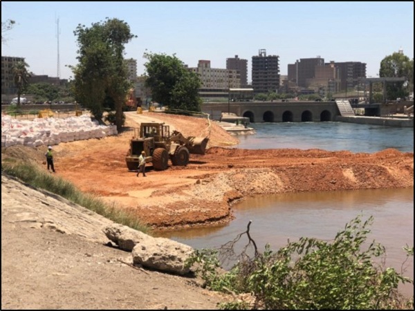 العمل على إنشاء السد المؤقت لتجفيف الموقع للبدء في إنشاء القنطرة الجديدة