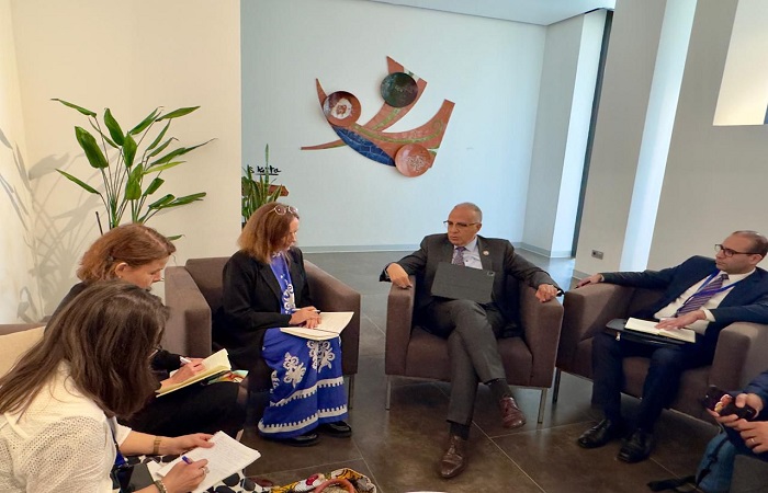 على هامش مشاركة سيادته فى فعاليات “الإجتماع التحضيري رفيع المستوى لمؤتمر الأمم المتحدة للمياه” بدولة السنغال .. التقى السيد الأستاذ الدكتور/ هانى سويلم وزير الموارد المائية والرى، بالسيدة/ آنتى راوتافارا مبعوث المياه الفنلندي، وذلك لبحث سُبل تعزيز التعاون بين مصر وفنلندا في مجال المياه