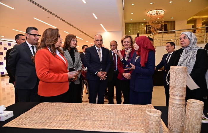 وخلال الاحتفالية .. تم عرض فيديو يستعرض التعاون المتميز بين وزارة الموارد المائية والرى والإتحاد الأوروبى في مجال تدريب السيدات الريفيات على تدوير نبات ورد النيل وتحويله لمنتجات يدوية مميزة بمركز التدريب الإقليمى للموارد المائية والرى