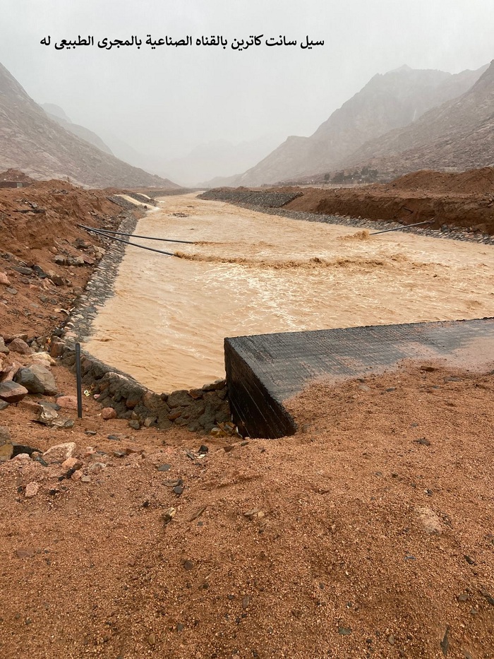 جدير بالذكر أن الوزارة قامت بإنشاء عدد من منشآت الحماية من أخطار السيول بمحيط مدينة سانت كاترين، حيث تم تنفيذ عدد (١) سد بوادي الأسباعية، وعدد (٢) بحيرة عند مصب وادي الأربعين، وكذا عدد (٢٤٢) بحيرة جبلية على الأودية الفرعية بمحيط المدينة، بإجمالي سعات تخزينية تُقدّر بحوالي ١.٣٠ مليون متر مكعب، وذلك لحماية مدينة سانت كاترين ومنشآتها الدينية والأثرية والبنية التحتية، وخط مياه (أبو رديس – سانت كاترين)، ومحطات البترول بمدخل المدينة، بالإضافة إلى تغذية الخزان الجوفي السطحي بمحيط المدينة، للمساهمة في توفير المياه للتجمعات البدوية بالمنطقة.
