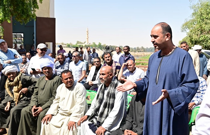 ** الدكتور سويلم يلتقي أمين روابط مستخدمي المياه بأسوان، ورئيس رابطة ترعة وادي النقرة، وعددًا من المزارعين، الذين أشادوا بالتحسن الكبير في حالة الري بزمام الترعة وارتفاع الإنتاجية الزراعية، نتيجة مجهودات الوزارة والتواصل الفعال بين الوزارة والمنتفعين