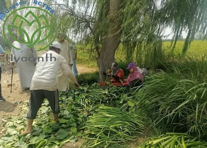 • تدريب روابط مستخدمي المياه على كيفية تجميع وتجفيف ورد النيل ليكون جاهزًا للاستخدام