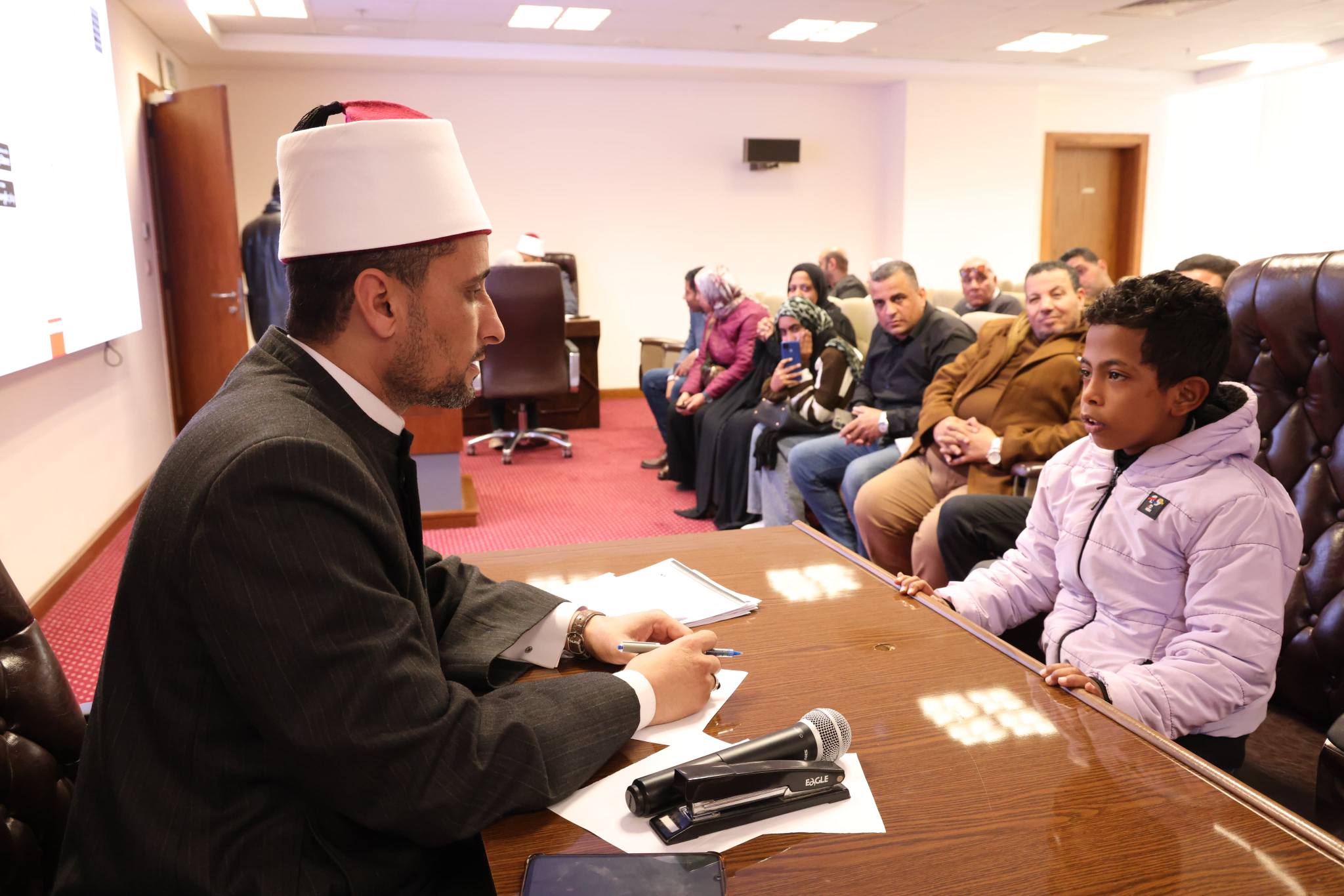 قامت وحدة تكافؤ الفرص بالاشراف على تنفيذ واعداد اختبارات للسادة المتقدمين لمسابقة حفظ القرآن الكريم للعام ٢٠٢٦ بمبنى الوزارة بالعاصمة الادارية وذلك تحت اشراف السادة الشيوخ رجال وزارة الاوقاف الذين وجهت لهم السيدة المهندسة / ايمان عبد العزيز رئيس قطاع التفتيش الفنى والمالى والادارى والمشرف على وحدة تكافؤ الفرص خالص الشكر وعظيم الامتنان على جهودهم المباركة والمخلصة فى رعاية أجيال القرآن الكريم كما تمنت التوفيق والسداد للمتسابقين
