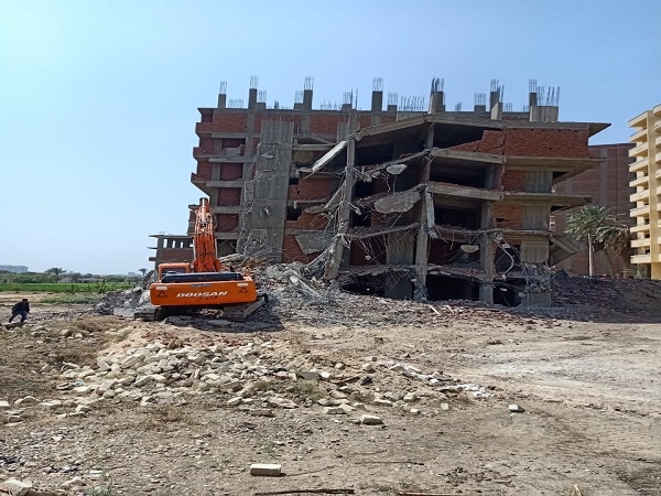 إزالة ثاني احد الأبراج المخالفة على نهر النيل بمحافظة المنيا تنفيذاً للقانون وردعاً لكل مخالف