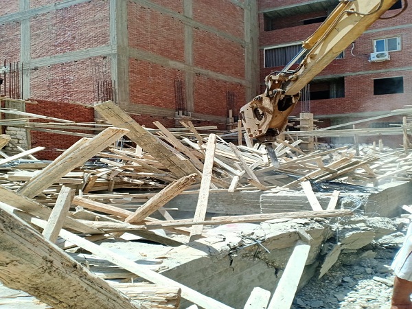 ويذكر انه أثناء وقت الحظر تم التعدي علي قطعه أرض تابعة لوزارة الموارد المائية والرى وتقع داخل كردون مدينه حلوان وفي منطقه متميزه بشارع عمر بن عبد العزيز وشرع المتعدي باقامه منزل عليها وصب السملات وجاري تجهيز شده الاعمده الخشبيه لصبها وعلى الفور تحركت الجهات التنفيذية بالاداره العامة لري حلوان بعمل محضر وقف أعمال وتم إخطار حي حلوان وتم الاتصال ليلا بمقاول التطهيرات لإرسال معدات