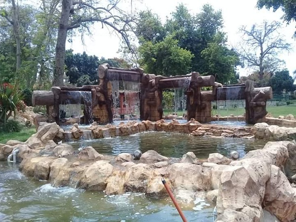 بالاضافه إلى الشلالات الصناعيه والبرجولات الخشبيه والمشايات الزلطيه ومسطح كبير من النجيله الخضراء