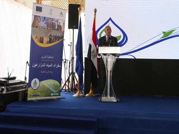 وأوضح الدكتور عبد العاطي أن وزارة الموارد المائية والري أطلقت مبادرة “سفراء المياه ” ، وذلك بالتعاون مع مشروع “دعم الإصلاح وتعزيز القدرات الفنية لقطاع المياه” (ستارز) والممول من الإتحاد الأوروبي ، والتى تهدف لتعزيز إنتماء طلبة المدارس في مصر والإستفادة من جهودهم في توعية مجتمعاتهم المحلية من خلال قيامهم بتطبيق ممارسات ترشيد إستخدام المياه والحفاظ عليها، وتوعية عائلاتهم وأصدقاءهم بهذه الممارسات وأهمية تطبيقها ، كما أوضح سيادته أنه تم أيضاً إطلاق مبادرة “سفراء المياه المزارعين” بهدف الاستفادة من جهود المزارعين الفائزين في توعية المزارعين المحيطين بهم من خلال قيامهم بعمل جلسات لنقل خبراتهم وتجاربهم الناجحة في تطبيق نظم الري الحديث لغيرهم من المزارعين ، وعمل زيارات ميدانية لأراضي المزارعين لمساعدتهم وإرشادهم ، مؤكداً أن نقل المعرفة من مزارع الى مزارع آخر تُعد من أسهل وأسرع الطرق لتحقيق التوعية المطلوبة