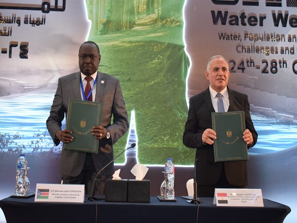 شهد حفل ختام اسبوع القاهرة الرابع للمياه ، قيام الدكتور محمد عبد العاطى وزير الموارد المائية والري والسيد ماناوا بيتر وزير الموارد المائية والري بدولة جنوب السودان بتوقيع مذكرة تفاهم بين البلدين فى مجال الموارد المائية والري