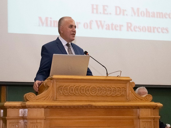 وفى بداية كلمته .. أعرب الدكتور عبد العاطى عن سعادته بإلقاء هذه المحاضرة مشيراً إلى أنها تُعد أحد أدوات التوعية بقضايا المياه وعرض الموقف المائى المصري ، خاصة في ظل التحديات المائية التى تواجهها مصر وعلى رأسها الأفعال الأحادية لملء وتشغيل سد النهضة الاثيوبى والزيادة السكانية والتغيرات المناخية ومحدودية الموارد المائية ، الأمر الذى يستلزم وضع السياسات اللازمة وإتخاذ العديد من الإجراءات وتنفيذ العديد من المشروعات الكبرى لتحقيق الإدارة المتكاملة والمثلى للموارد المائية ، بإعتبار أن قضية المياه هى قضية محورية في مجال تحقيق التنمية المستدامة ، مؤكداً في الوقت ذاته على ما تمتلكه مصر من خبرات وطنية يمكنها التعامل مع التحديات التى يواجهها قطاع المياه