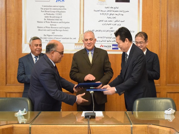 شهد السيد الدكتور/ محمد عبد العاطى وزير الموارد المائية والرى حفل توقيع عقد “مشروع إنشاء مجموعة قناطر ديروط الجديدة” الواقعة على بحر يوسف بمحافظة أسيوط ، بين السيد المهندس/ إيهاب عبد الله الجوهرى رئيس قطاع الخزانات والقناطر الكبرى ممثلاُ عن وزارة الموارد المائية والرى ، والسيد المهندس/ هايديمى هاتانو مدير شركة داى نيبون اليابانية ، وذلك بحضور السيد الدكتور/ رجب عبد العظيم وكيل الوزارة والمشرف على مكتب الوزير ، والسيد المهندس/ السيد شلبى رئيس مصلحة الرى ، والسيد المهندس/ محمود رافع رئيس الإدارة المركزية للدراسات والتصميمات بقطاع الخزانات ، والسيد المهندس/ عز الدين محمود المهندس المقيم للمشروع ، وممثلين عن هيئة التعاون الدولى اليابانية (جايكا) ، والمكتب الإستشارى اليابانى (سانيو)