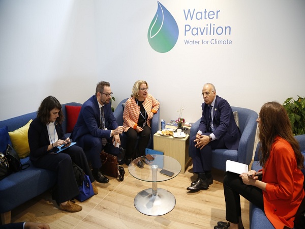 على هامش فعاليات مؤتمر المناخ .. إلتقى السيد الأستاذ الدكتور/ هانى سويلم وزير الموارد المائية والري بالسيدة/ سينجا سولزى وزيرة التعاون الإقتصادى والتنمية الألمانية.