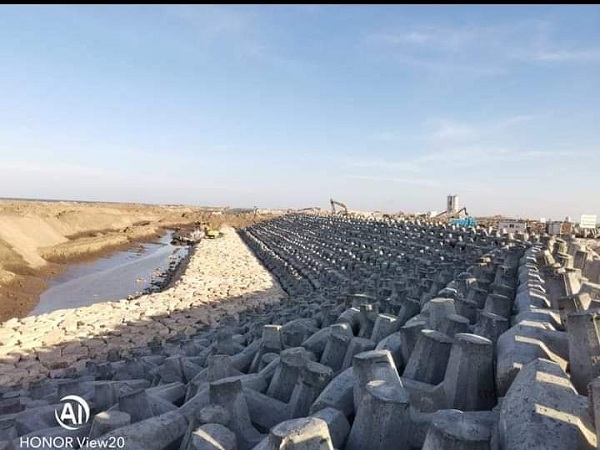 نهو عملية إنشاء حاجز غاطس وأعمال حماية بأطوال ٨٠٠ متر لحماية المنطقة غرب لسان رأس البر