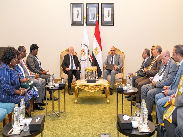 قبيل انطلاق فعاليات إسبوع القاهرة السابع للمياه وأسبوع المياه الأفريقي التاسع .. التقى السيد الأستاذ الدكتور/ هانى سويلم وزير الموارد المائية والرى ورئيس مجلس وزراء المياه الافارقة ، بالسيد/ كارل جوستاف وزير الزراعة والمياه والأراضي الناميبي لبحث تعزيز التعاون بين البلدين فى مجال المياه .