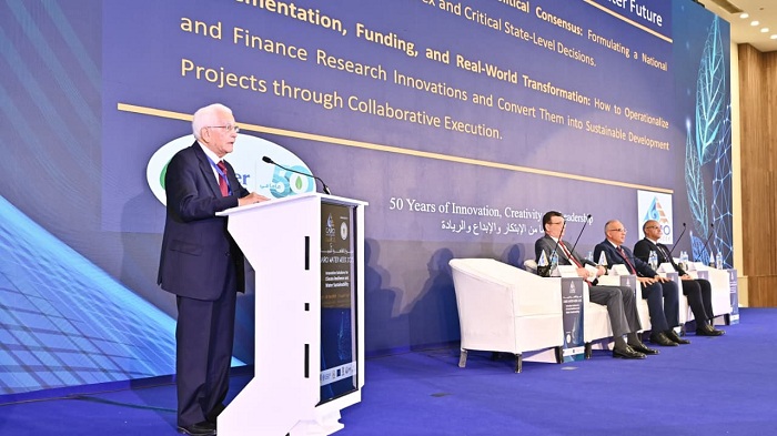 وفى كلمته بالاحتفالية .. توجه الدكتور سويلم بخالص التهنئة للسادة أعضاء المركز القومي لبحوث المياه على هذه اللحظة التاريخية التى نشهد فيها مرور ٥٠ عام من النجاح العلمى والبحثى .
