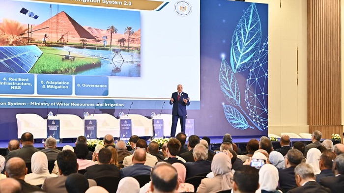 وقام الدكتور سويلم بتقديم عرض تقديمى يستعرض أبرز محاور ومستهدفات الجيل الثانى لمنظومة الرى المصرية 2.0 ، حيث تم التوسع فى معالجة وإعادة إستخدام مياه الصرف الزراعى، ويتم دراسة الإعتماد على محطات معالجة لامركزية لمعالجة مياه الصرف الزراعى على امتداد شبكة المصارف الزراعية .